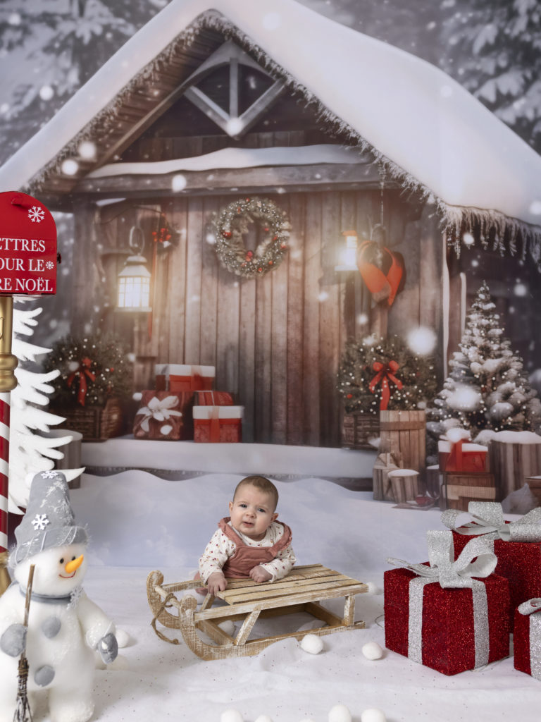 La séance dure environ 20 minutes, « Auprès de la fenêtre » qui est un joli décor intérieur pour des photos en famille ou juste vos enfants et « le chalet enneigé », un merveilleux décor extérieur pour les photos de famille.